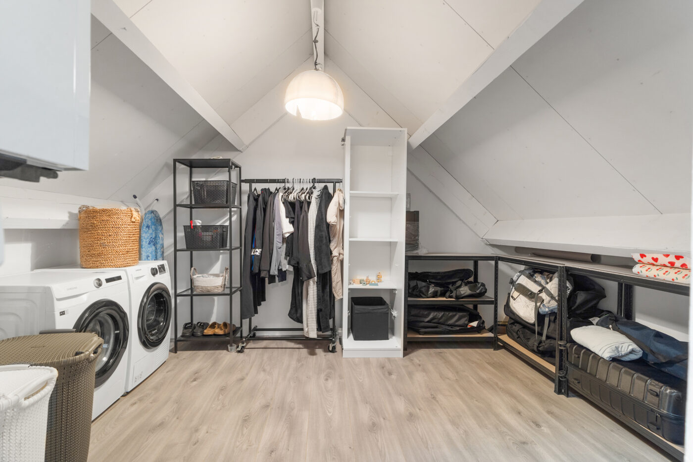 Via een vaste trap bereik je de tweede verdieping met een derde slaapkamer en een ruime was-/technische ruimte. Hier kan desgewenst een tweede badkamer worden gerealiseerd.