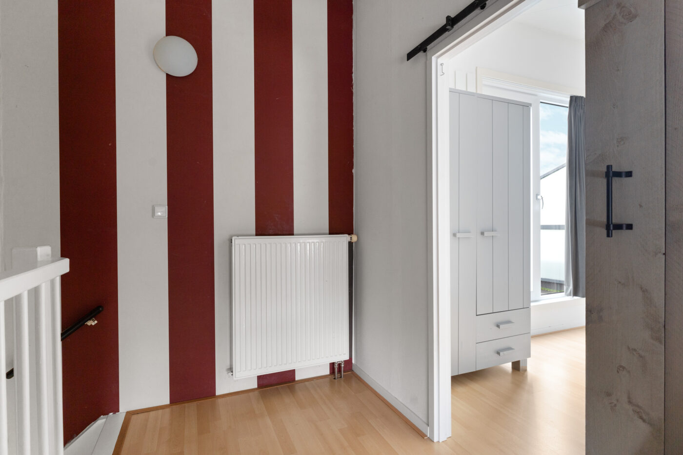 De eerste verdieping verrast met een prachtige vide die zorgt voor veel licht en contact met de begane grond (hal). Je vindt hier drie slaapkamers, een moderne badkamer uit 2017 met inloopdouche, bad en wastafelmeubel, een separaat toilet en een handige wasruimte met plek voor apparatuur en de omvormer van de zonnepanelen. De gehele verdieping is strak afgewerkt met laminaat en spachtelputz.