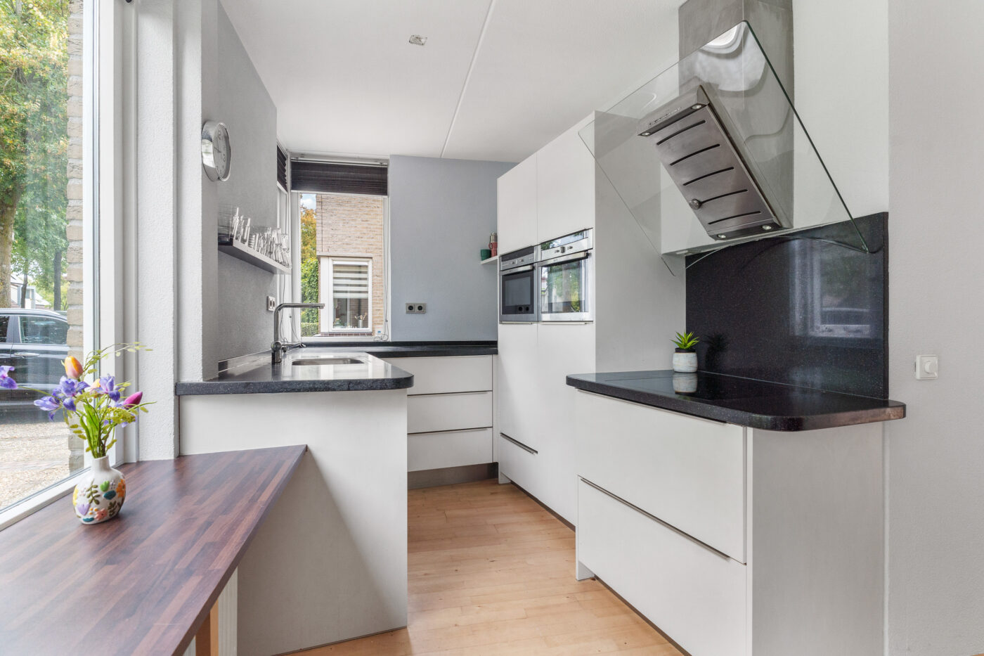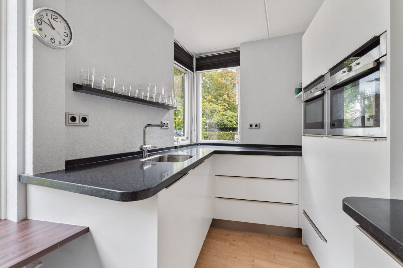 Via de hal met toilet, meterkast en toegang tot de garage kom je in het woongedeelte. De tuingerichte woonkamer heeft grote raampartijen en een schuifpui naar de achtertuin, waardoor er een mooie verbinding is tussen binnen en buiten. Aan de voorzijde bevindt zich de open keuken, voorzien van alle moderne inbouwapparatuur: inductiekookplaat, afzuigkap, vaatwasser, combi-oven/magnetron, koelkast. Er is bovendien voldoende plek voor een royale eettafel, waar je heerlijk kunt tafelen met uitzicht op het groene plantsoen. Tevens heeft de begane grond elektrische rolgordijnen met powerview van het merk Luxaflex, zowel aan de voor als achterzijde.