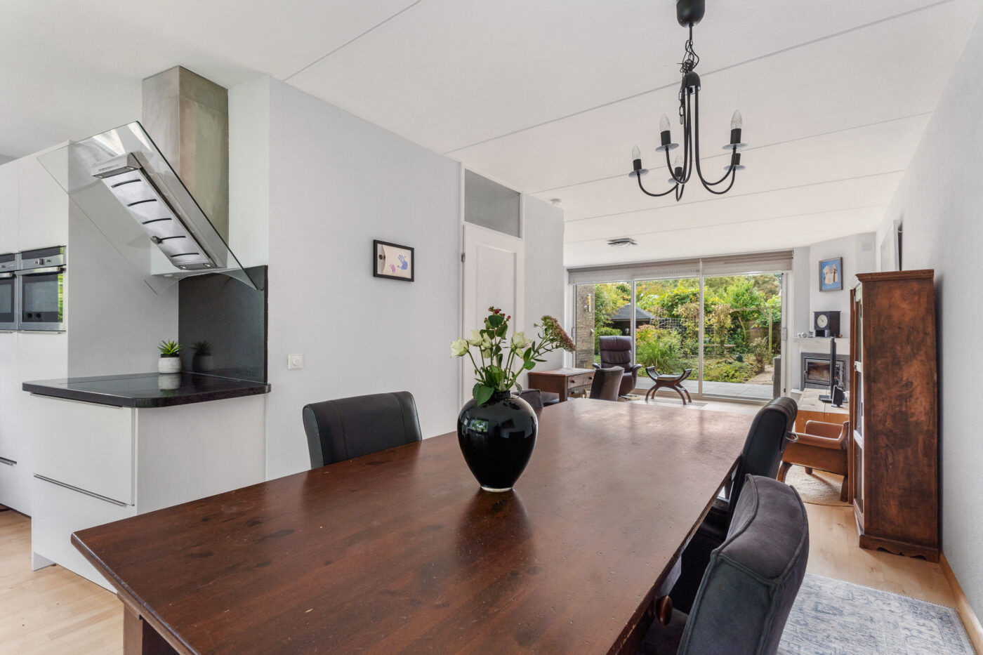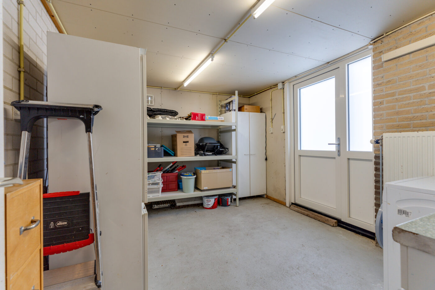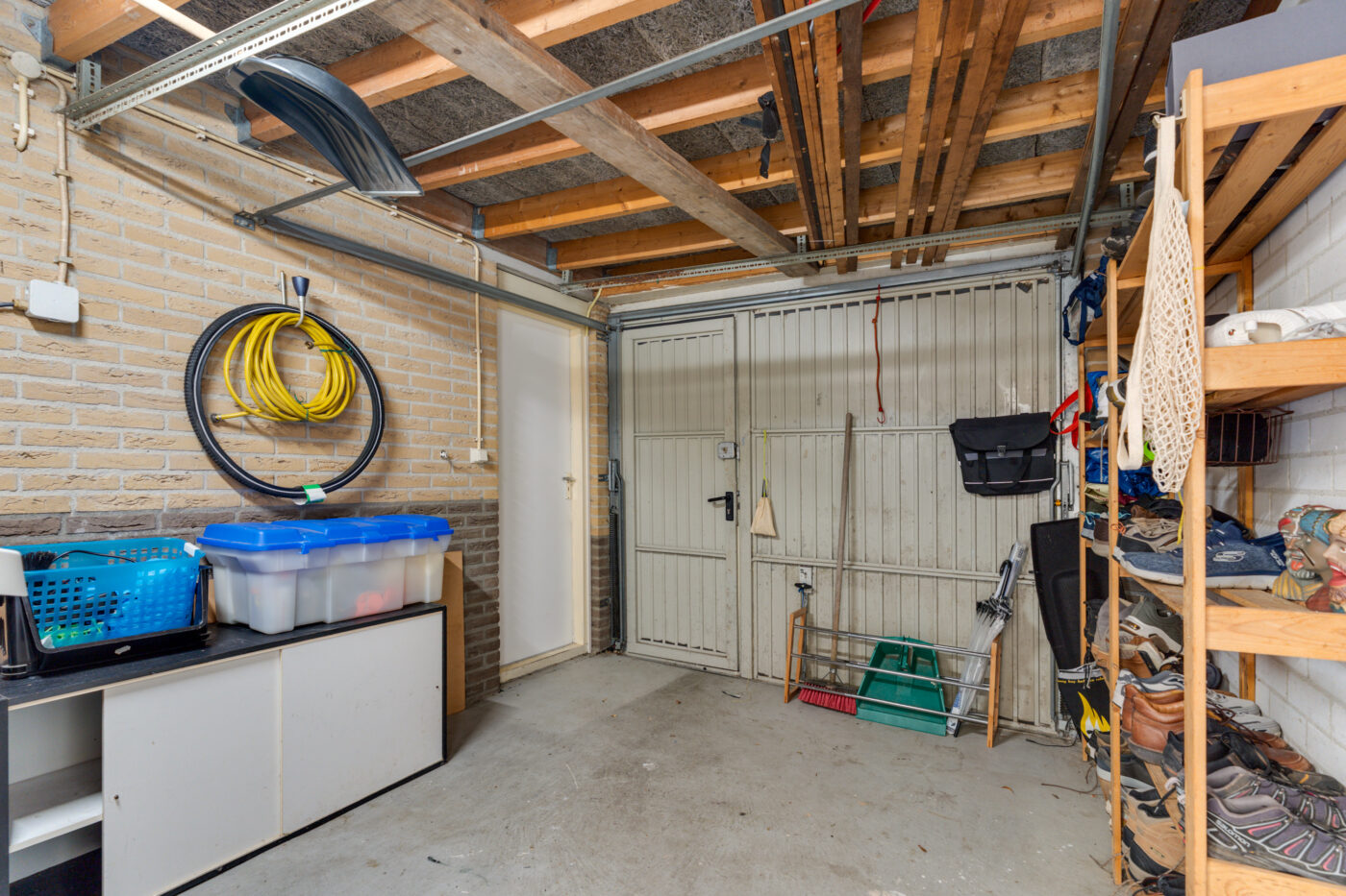 De garage wordt momenteel gebruikt als bijkeuken/wasruimte en opslag, maar kan desgewenst deels bij de woonkamer worden betrokken, ideaal voor wie nog meer leefruimte wil creëren.