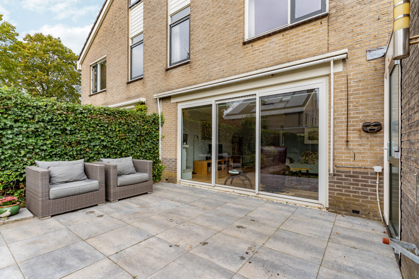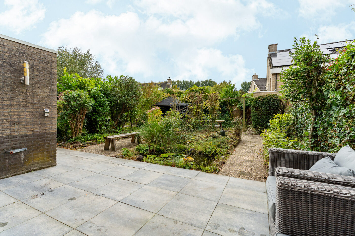 De woning beschikt over een verrassend ruime achtertuin op het zuiden met volop zon en mogelijkheden om meerdere zithoeken te creëren. Hier geniet je van privacy, rust en buitenleven. Aan de voorzijde bevindt zich een royale oprit met plaats voor minimaal twee auto’s, aangevuld met een verzorgde voortuin waarin zowel een gezellig zitgedeelte als fraai groen zijn aangelegd.