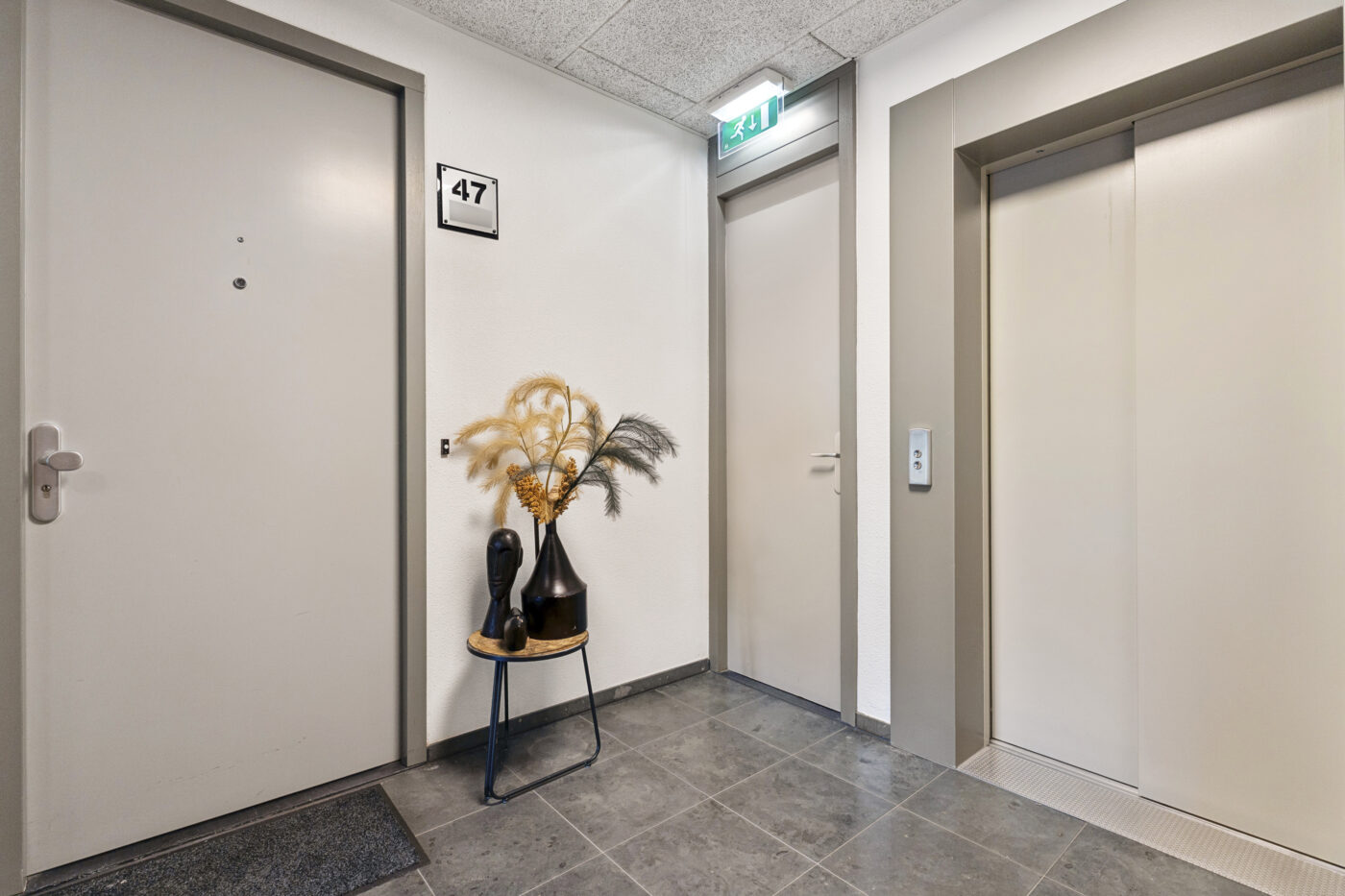 Through the sliding doors, you step directly onto the spacious, covered balcony, which faces south and spans the full width of the apartment. Here, you can enjoy peace, space, and an atmospheric outdoor experience all year round.