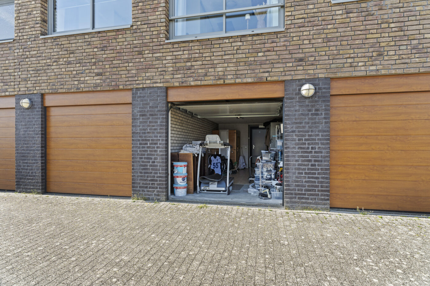 Op de begane grond bevindt zich een zeer ruime garage van circa 21 m² met een elektrische deur. Ideaal voor het stallen van fietsen, extra opslag of als hobbyruimte.