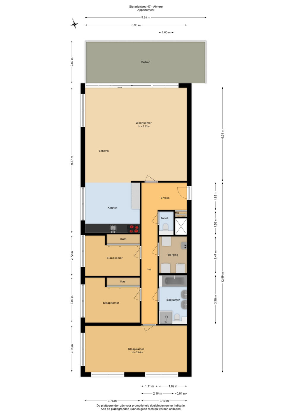 Het appartement beschikt over drie fijne slaapkamers en is geheel voorzien van een laminaat vloer. De ruime badkamer is volledig betegeld en voorzien van een douchecabine, ligbad, dubbele wastafel en toilet. Daarnaast is er een aparte bijkeuken/wasruimte, die perfect is voor extra opslag en huishoudelijk gemak.