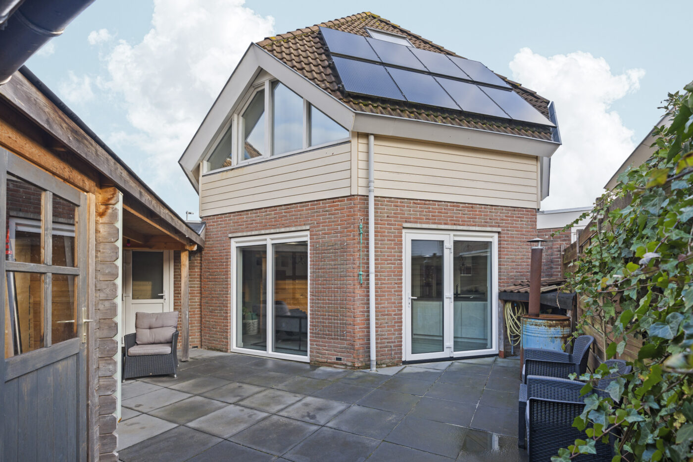 Thanks to the striking architecture, large windows, and clever layout, the house feels wonderfully light and spacious. The open structure and playful lines give the whole a modern and exclusive feel. Furthermore, the house is connected to the neighbors only via the storage room, ensuring privacy and a detached feel.